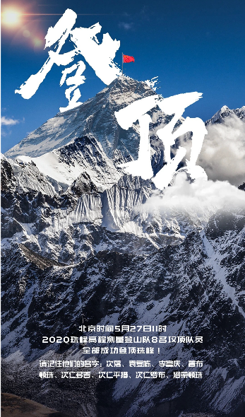 北京時間5月27日11時整,2020珠峰高程測量登山隊8名攻頂隊員,全部成功登頂珠峰!