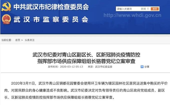 今早,據(jù)武漢市紀(jì)委監(jiān)委消息,將就對(duì)此事負(fù)有領(lǐng)導(dǎo)責(zé)任的青山區(qū)政府副區(qū)長(zhǎng)黨紀(jì)立案審查。
