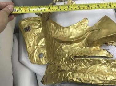 (此次出土的黃金面具。三星堆博物館官方公眾號供圖)