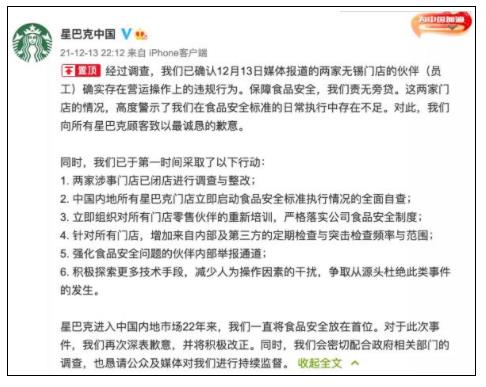 (星巴克道歉 截圖自星巴克官方微博)