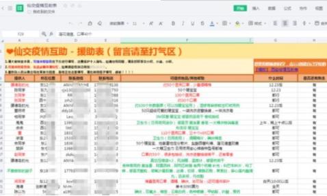 ?。ㄎ靼步淮髮W(xué)生創(chuàng)建的“仙交疫情互助表”部分截圖)