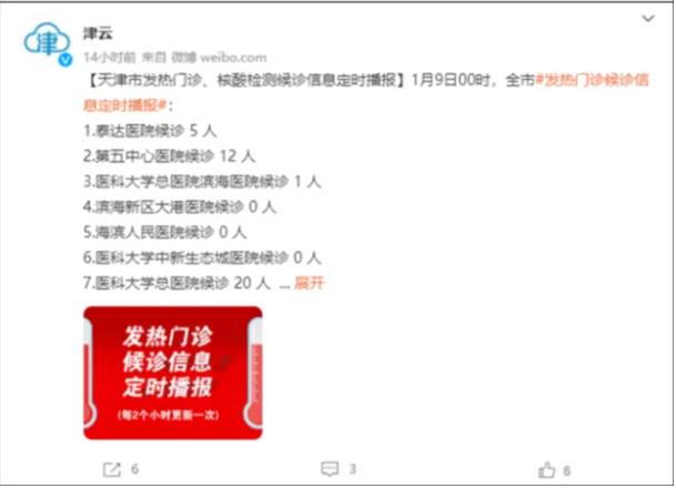 也是最近,天津出現(xiàn)散發(fā)聚集性疫情,有網(wǎng)友發(fā)現(xiàn),多家天津市政務微博對該市發(fā)熱門診、核酸檢測候診信息每兩小時刷新播報一次。就在有人感嘆該市工作做得細致時,有天津市民凡爾賽地表示:“這樣的操作,從2020年疫情開始就有了”。