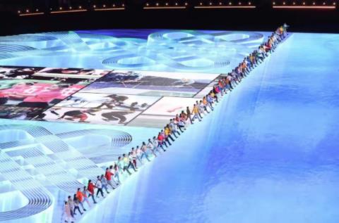 還有,“構(gòu)建一朵雪花”的橋段,不只是創(chuàng)新無限,更給人們帶來暖意和期待。開幕前,大概沒有多少人會想到,寫有各代表團(tuán)名字的引導(dǎo)牌,會變身為一朵朵雪花,而這朵朵來自世界各地的雪花最終還會匯聚成一朵璀璨的大雪花,且成為本屆冬奧會獨(dú)特的火炬臺。它們以火炬為中心,被象征著和平的橄欖枝所纏繞,緊緊聯(lián)結(jié)在一起。這不正是奧運(yùn)格言“更快、更高、更強(qiáng)、更團(tuán)結(jié)”最好的具象表達(dá)嗎?