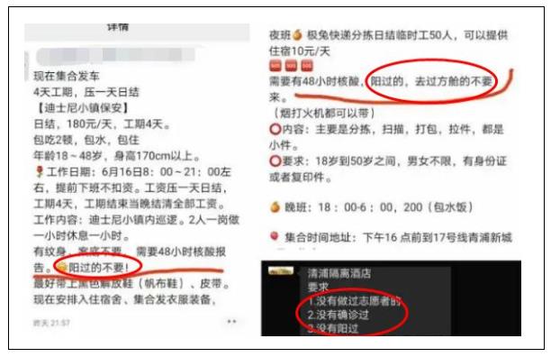 (部分用人單位招聘啟事截圖 圖源 新聞晨報)