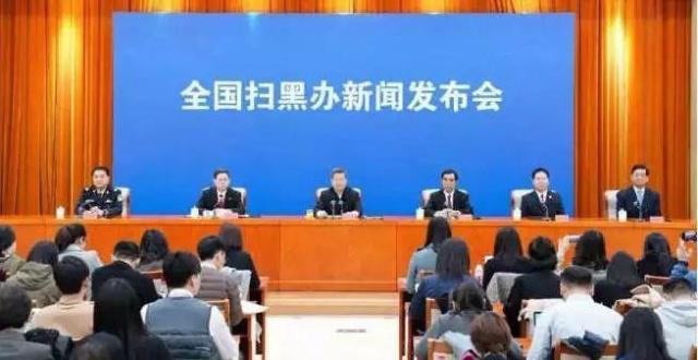 圖為,全國(guó)掃黑辦新聞發(fā)布會(huì)現(xiàn)場(chǎng)。圖片來源,中國(guó)青年網(wǎng)。