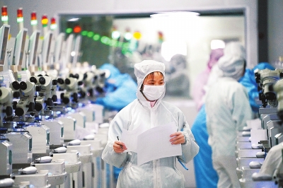 圖為河南省信陽市浉河區(qū)在嚴格落實疫情防控安全措施的前提下,積極推進企業(yè)復工復產(chǎn)。圖片來源:河南日報