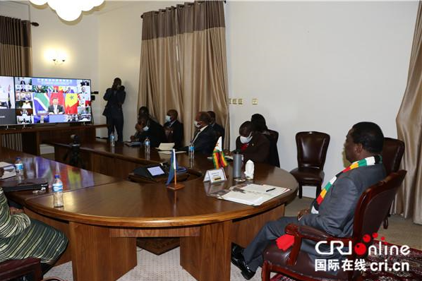 圖為,6月17日,津巴布韋總統(tǒng)與部分內(nèi)閣高官參加中非團結抗疫特別峰會。圖片來源:國際在線