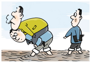 在當(dāng)前轉(zhuǎn)變干部作風(fēng)的大背景下,干部放下身段與基層民眾同吃、同住、同勞動已成為干部的主流意識,許多干部會擔(dān)心腿上的泥巴少了,脫離了群眾,了解不了群眾疾苦,因而會創(chuàng)造與群眾接觸的機(jī)會。相比之下,這位要背進(jìn)村的干部就顯得格格不入,連中央領(lǐng)導(dǎo)在救災(zāi)和了解民情的過程中,都能冒著危險,不怕臟不怕累,卷起褲腳頂著風(fēng)浪,一身汗一身泥地走進(jìn)群眾當(dāng)中,而這位鄉(xiāng)鎮(zhèn)的干部反而因所謂鞋子高檔而爬到了村民的背上,讓人錯愕不已。