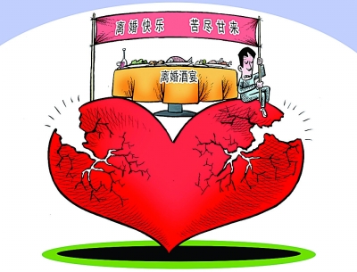 電影《非誠(chéng)勿擾2》中,李香山和芒果之間辦了一場(chǎng)“離婚典禮”。在寧鄉(xiāng)縣金洲鎮(zhèn),日前也上演了一場(chǎng)“離婚酒宴”。與電影不同的是,辦酒宴只有男方,他還在酒樓前拉出了“離婚快樂,苦盡甘來”的橫幅。(11月4日《瀟湘晨報(bào)》)