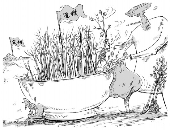 蘇榮將他在甘肅主政時(shí)的種樹(shù)經(jīng)驗(yàn)移植到江西,并將之稱(chēng)為“綠色崛起”。民間評(píng)價(jià)“一大四小”工程說(shuō):一大四小,純粹亂搞,田里栽樹(shù),嶺上長(zhǎng)草!而蘇榮家屬插手“一大四小”工程獲得了巨額回報(bào)。(《中國(guó)經(jīng)濟(jì)周刊》2月16日)