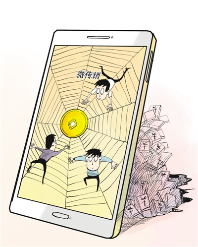 據(jù)調(diào)查,在微信等社交網(wǎng)絡(luò)平臺,一些不法分子打著金融互助、虛擬貨幣、免費旅游等旗號,進行傳銷活動。相比于傳統(tǒng)上依靠實物進行傳銷的方式,這類“微傳銷”,傳播速度快、參與人員隱蔽、資金轉(zhuǎn)移方便,發(fā)現(xiàn)和查處難度更大,社會危害更廣,涉案總金額也往往更加巨大,應(yīng)引起監(jiān)管部門重視。這正是: