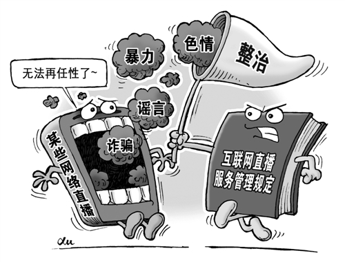 點 評 近日,國家互聯(lián)網(wǎng)信息辦公室發(fā)布《互聯(lián)網(wǎng)直播服務(wù)管理規(guī)定》,對互聯(lián)網(wǎng)直播進行規(guī)范管理。近年來,網(wǎng)絡(luò)直播作為一種新型傳播形式迅猛發(fā)展,但也出現(xiàn)部分直播平臺傳播色情、暴力、謠言、詐騙等信息,違背社會主義核心價值觀的問題,給青少年身心健康帶來不良影響。此外,還有的平臺缺乏相關(guān)資質(zhì),違規(guī)開展新聞信息直播。網(wǎng)絡(luò)直播存在的種種亂象,嚴重擾亂了正常的傳播秩序,必須予以規(guī)范,期待管理規(guī)定的出臺能夠有效凈化網(wǎng)絡(luò)環(huán)境,促進網(wǎng)絡(luò)直播的健康發(fā)展。 (時 鋒