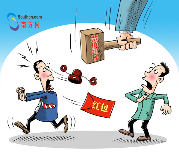 節(jié)日期間更應(yīng)提高拒收“紅包”的警惕性和自覺(jué)性。(漫畫(huà):小栗子)