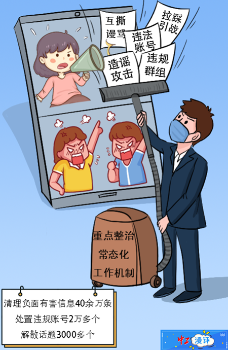 通過多方合力,扎實(shí)行動(dòng),“飯圈”整治取得了“濃、嚴(yán)、強(qiáng)、建”的具體成效,成果觸目可見、觸手可及,及時(shí)回應(yīng)了主流民意的期盼。但我們更應(yīng)當(dāng)認(rèn)識到,“飯圈”清理整治并非一蹴而就,仍需社會(huì)各界持續(xù)發(fā)力。只有不斷強(qiáng)化完善常態(tài)化治理機(jī)制,加強(qiáng)引導(dǎo)網(wǎng)民對“飯圈”亂象本質(zhì)和危害的認(rèn)識,才能守住底線,遏制泛娛樂化的野蠻生長,從而根治“飯圈文化”畸形亂象。