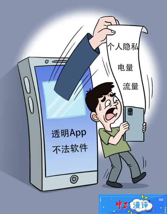 近期出現(xiàn)了一類以沒有名稱、圖標(biāo)透明的方式隱藏在手機里的“透明App”。這類不法軟件不僅耗電、耗流量,推送各類廣告令機主不勝其擾,還往往過度索權(quán),存在個人信息泄露風(fēng)險。(據(jù)新華社5月19日報道)