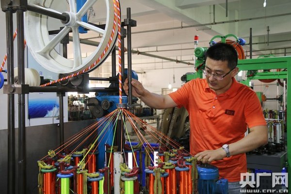 央廣網(wǎng)青島7月19日消息(記者 王晶)“研發(fā)新型繩纜時(shí),曾在車(chē)間待過(guò)2天零一夜沒(méi)有出去,有時(shí)累了就直接抱著纜繩睡過(guò)去了”。7月19日中午,青島天氣燥熱難忍,海麗雅集團(tuán)80后制繩技師徐連龍帶領(lǐng)記者徑直走向制繩車(chē)間,車(chē)間內(nèi)噪音高達(dá)80分貝,聽(tīng)清旁人說(shuō)話(huà)都很費(fèi)力甚至有些刺耳,但確是徐連龍過(guò)去8年來(lái)一直堅(jiān)守的研發(fā)“陣地”。