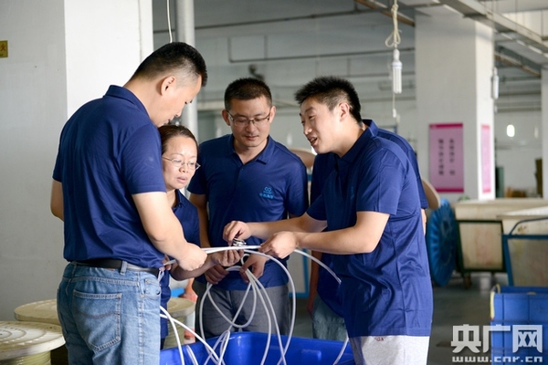 此后,徐海龍對(duì)繩纜的研制更加癡迷,在車(chē)間研發(fā)新繩纜關(guān)鍵階段經(jīng)?!皬匾共粴w”,后來(lái)索性直接住在員工宿舍?!昂屠掀偶s會(huì)吃飯經(jīng)常遲到3-4個(gè)小時(shí),后來(lái)我們就直接約定如果吃飯時(shí)長(zhǎng)超過(guò)一個(gè)小時(shí)就自動(dòng)取消?!边@位看似有點(diǎn)呆萌的80后小伙,對(duì)老婆也存在些許的愧疚。