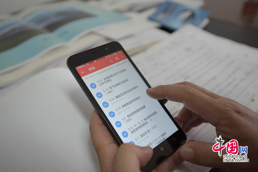 動車應急指揮系統(tǒng)快速查詢的內(nèi)容以可編輯文檔的形式被劉波存在了手機里,以便隨時添加和更新經(jīng)驗。 中國網(wǎng)記者 張若夢 攝