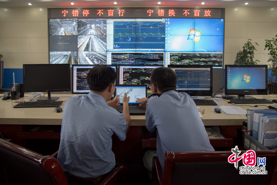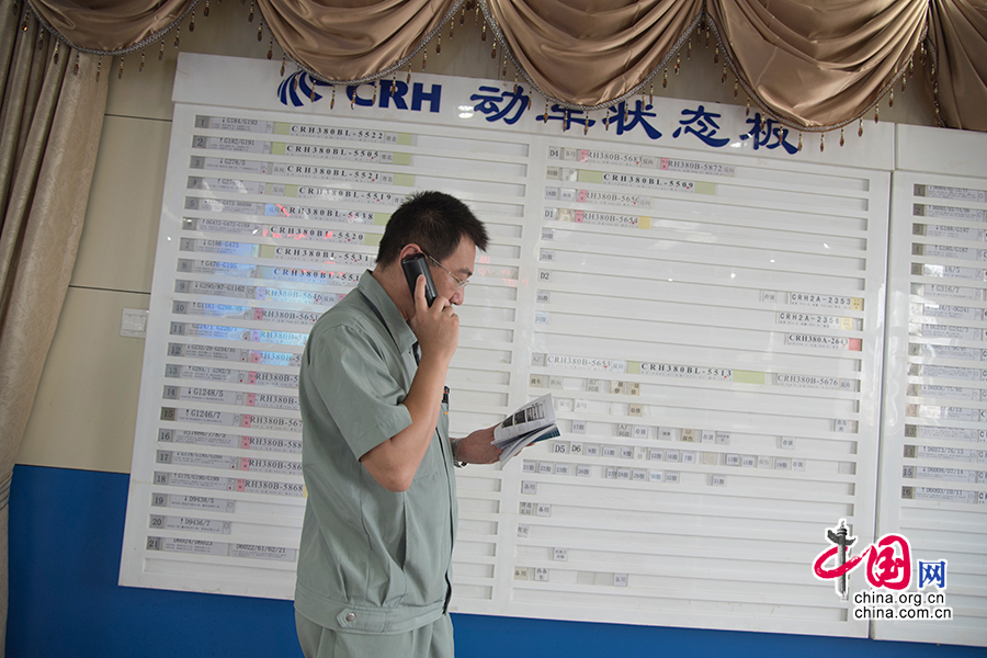 調(diào)度室內(nèi),劉波遠程指導隨車機械師處理故障。 中國網(wǎng)記者 張若夢 攝