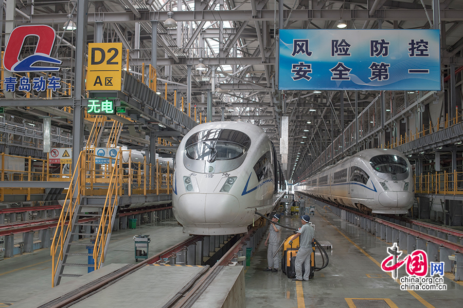 中國網(wǎng)青島訊(記者 張若夢)完成了一次運輸旅客的任務后,動車組要去哪里?在濟南鐵路局青島動車段,動車們要去找機械師劉波和他的同事們“報到”。經(jīng)過他們的精心檢修和保養(yǎng),動車組才會以嶄新的面貌再次出發(fā)。