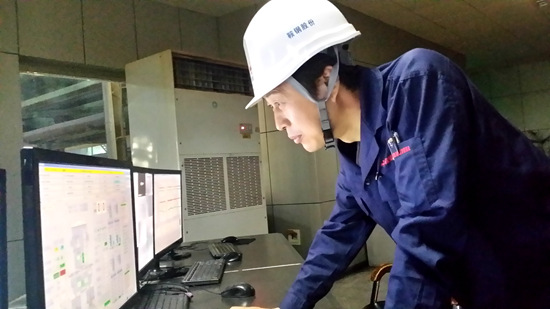 林學(xué)斌在操作臺上通過監(jiān)測系統(tǒng)監(jiān)測生產(chǎn)線狀態(tài)