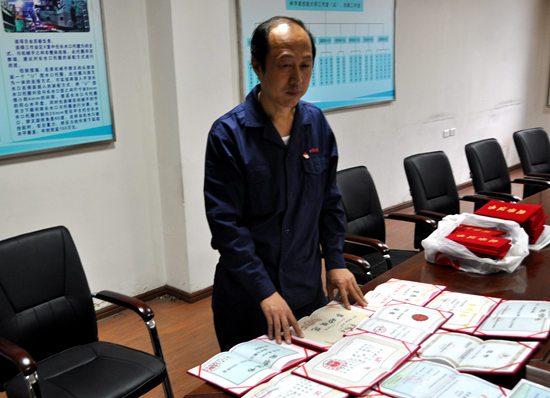 林學(xué)斌給記者展示所獲得的各種榮譽證書