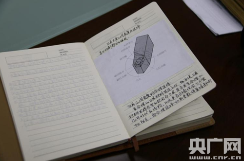 梁偉幾十萬(wàn)字的手寫工作筆記,圖文并茂。央廣網(wǎng)記者 王晶攝