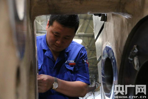 梁偉說(shuō),0.01毫米的誤差絕對(duì)不能出現(xiàn)。央廣網(wǎng)記者 王晶攝
