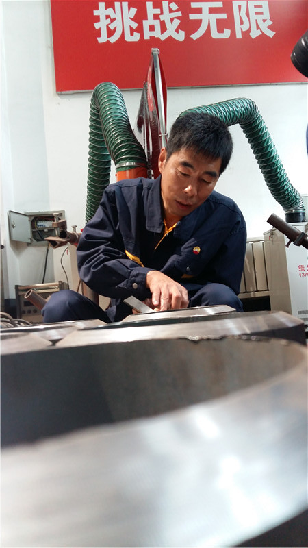 “咱們焊工就跟裁縫一樣,只不過她們縫補拼接的是衣服,咱們拼接的是鋼板還有機(jī)械?!弊鳛橹袊吞烊粴獾诎私ㄔO(shè)有限公司煉化設(shè)備制造廠焊工班班長的劉宇志這樣跟受訓(xùn)的年輕工人描述焊工的工作,作為“鋼板裁縫”,劉宇志在焊接第一線已經(jīng)“縫縫補補”了24年。