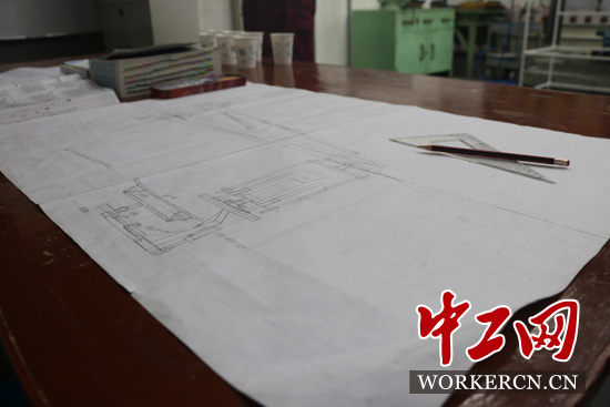 盛保柱繪制的圖紙。中工網(wǎng)記者葛文琦攝。