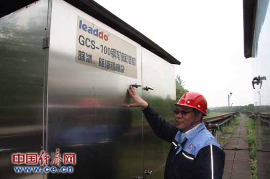 朱林榮介紹GCS-100鋼軌除濕機(jī)。中國(guó)經(jīng)濟(jì)網(wǎng)記者佟明彪/攝