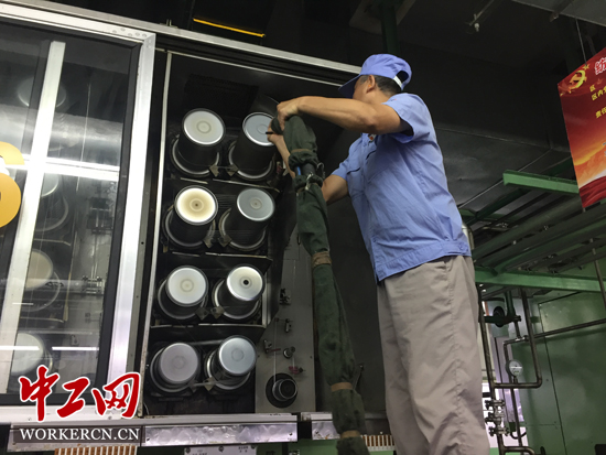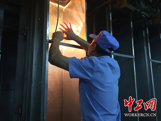 張國華查看噴絲板漏膠情況。中工網(wǎng)記者 劉英杰 攝