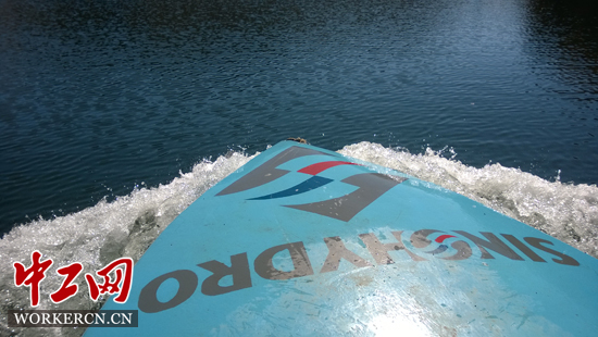 劉杰打造的麥特隆第一船——SINOHYDRO號快艇,乘風(fēng)破浪駛向麥特隆湖上游。受訪單位供圖