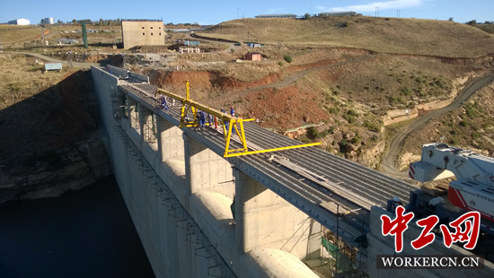 麥特隆水壩在原本的設(shè)計(jì)中壩頂沒有交通功能,兩岸村民需繞道幾公里才能到達(dá)對岸。見此狀,水電八局向項(xiàng)目業(yè)主提出了增橋方案。壩頂橋預(yù)制梁安裝時(shí),工程量雖小但當(dāng)?shù)胤职桃獌r(jià)很高,購買一臺架橋機(jī)自己安裝既昂貴又浪費(fèi)。于是,劉杰便從工地閑置的廢舊鋼材中想辦法。他利用項(xiàng)目部二十幾噸閑置鋼材,采用杠桿原理設(shè)計(jì)制作出了一臺簡易架橋機(jī),僅12天時(shí)間就完成了壩頂橋預(yù)制梁的架設(shè),為兩岸村民架起了一座“幸福橋”,直接節(jié)約設(shè)備成本與工期成本超過150萬元人民幣。為此,水電八局將這臺簡易架橋機(jī)命名為“劉杰架橋機(jī)”。