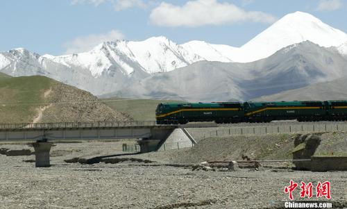 資料圖:2007年7月13日,一列火車通過青藏鐵路線。中新社記者 杜洋 攝