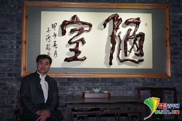 中國(guó)根書(shū)第一人、中國(guó)鄉(xiāng)土藝術(shù)大師、中國(guó)德藝雙馨藝術(shù)家楊玉冰。中國(guó)青年網(wǎng)記者 劉尚君攝
