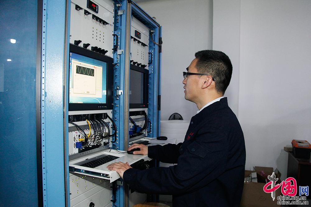 3月29日,王廣金在工作現(xiàn)場進(jìn)行儀控產(chǎn)品的調(diào)試。中國網(wǎng) 李佳攝影