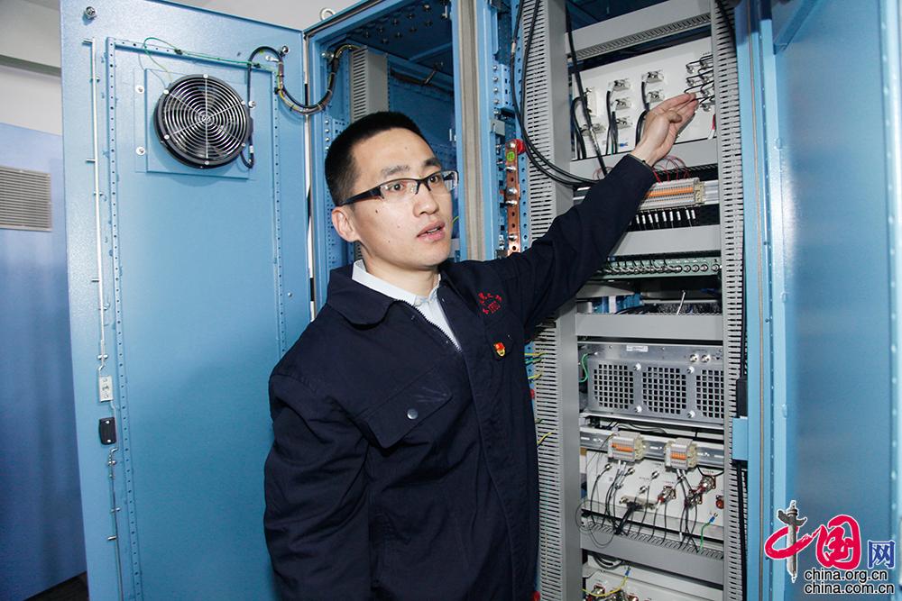 3月29日,王廣金在工作現(xiàn)場進(jìn)行電氣裝配質(zhì)量檢查。中國網(wǎng) 李佳攝影