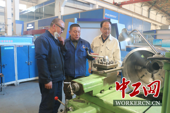 張學(xué)海在工作中指導(dǎo)徒弟。中工網(wǎng)記者朱晶晶攝