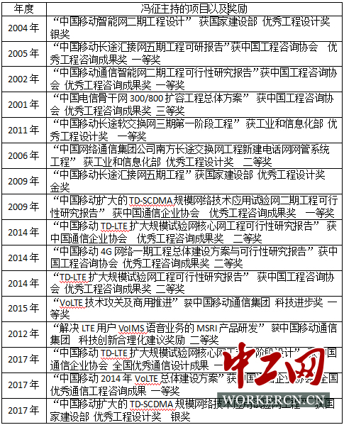 馮征主持的項目以及獲得的獎勵。中工網(wǎng)記者 朱晶晶整理