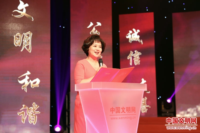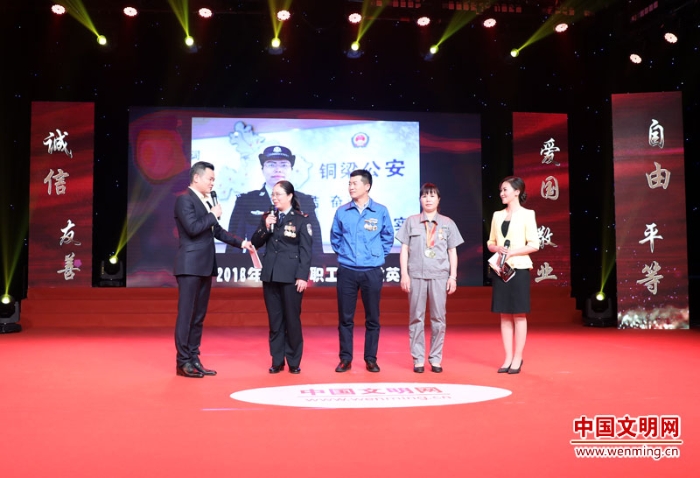 中央廣播電視總臺主持人鞠萍作為發(fā)布人,揭曉獲得2018年“最美職工”稱號的人物名單。中國文明網(wǎng) 王楠 攝