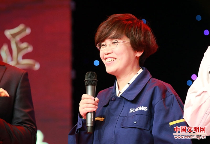 徐工集團工程機械股份有限公司建設(shè)機械分公司高級工程師孫麗接受現(xiàn)場采訪。中國文明網(wǎng) 趙彬宇 攝