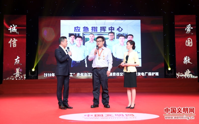 “最美職工”集體代表,貴州烏江水電開發(fā)有限責任公司構(gòu)皮灘發(fā)電廠保護班班長李霄接受采訪。中國文明網(wǎng) 王楠 攝