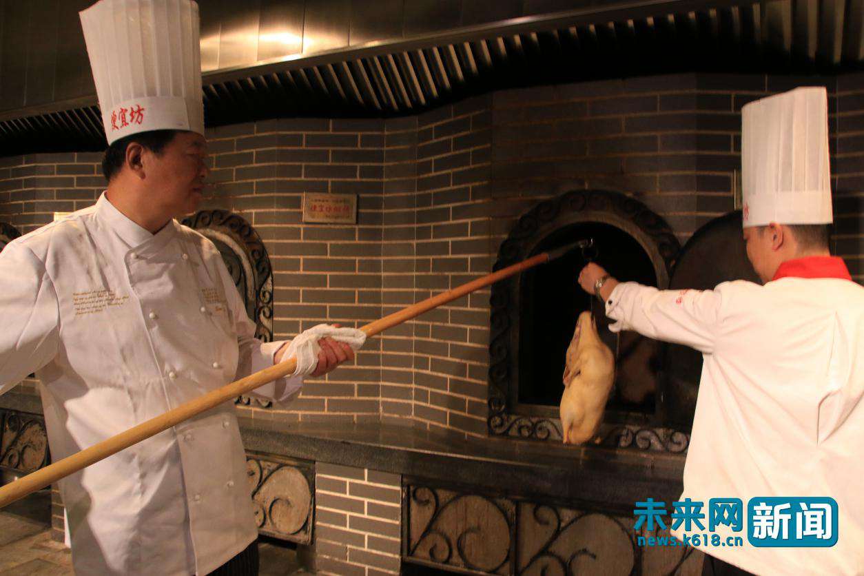 孫立新除了是國宴大師,還是北京“中華老字號”便宜坊烤鴨店的主廚。在北京前門鮮魚口大街入口處,有一個青灰色的雕花磚墻、古色古香、朱欄綠柱的建筑——“便宜坊”,這家店具有600多年的歷史。
