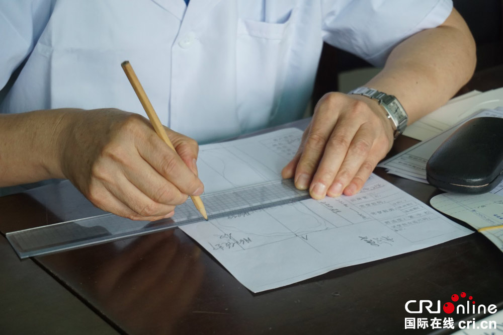 陳國學(xué)根據(jù)腳型測量圖設(shè)計鞋楦。攝影:聶崢