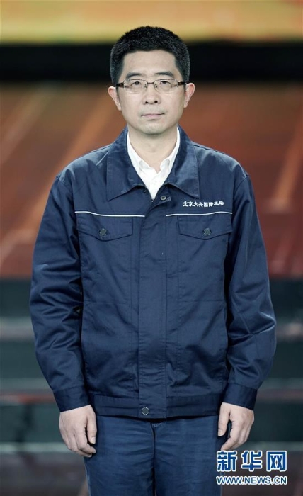 北京新機場建設指揮部高級業(yè)務經(jīng)理吳志暉在“最美職工”發(fā)布儀式上(4月21日攝)。 新華社記者 才揚 攝