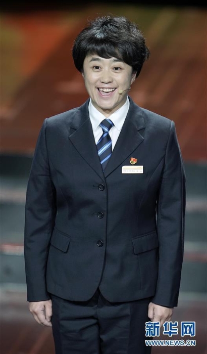 中國鐵路哈爾濱局集團有限公司齊齊哈爾車輛段工長陳佳在“最美職工”發(fā)布儀式上(4月21日攝)。 新華社記者 才揚 攝