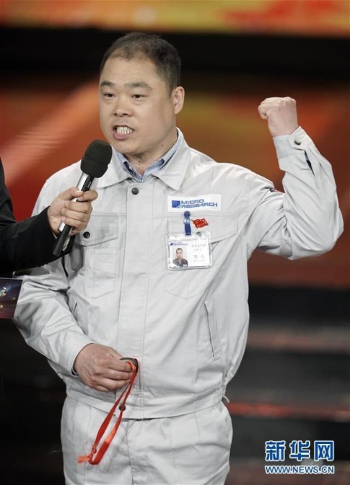 江蘇省無錫微研股份有限公司高級技師陳亮在“最美職工”發(fā)布儀式上(4月21日攝)。 新華社記者 才揚 攝