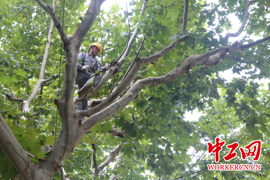 就像人需要美容一樣,行道樹也需要調(diào)整樹形、平衡樹勢(shì)?!熬G色空間”的背后,有一群“蜘蛛俠”,他們游走在離地5-6米的高空,賦予每一棵樹勃勃生機(jī)。