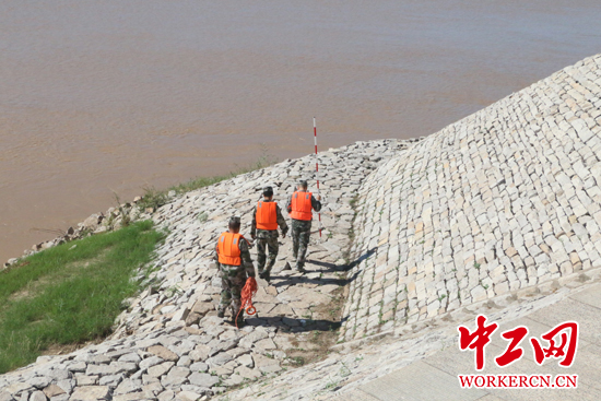 雖然已入秋,李濤還像往常一樣,一大早就在黃河堤壩上來(lái)回巡查?!艾F(xiàn)在還在汛期,一天要仔細(xì)巡查兩次才能放心?!鼻鍜叩添斅访妗⑿拚鷤浞朗?、填墊水溝浪窩、查看水位……9.5公里長(zhǎng)的堤防,34段壩岸,巡查一趟下來(lái)要花好幾個(gè)小時(shí)的時(shí)間,李濤身上的衣服往往被汗水濕透。